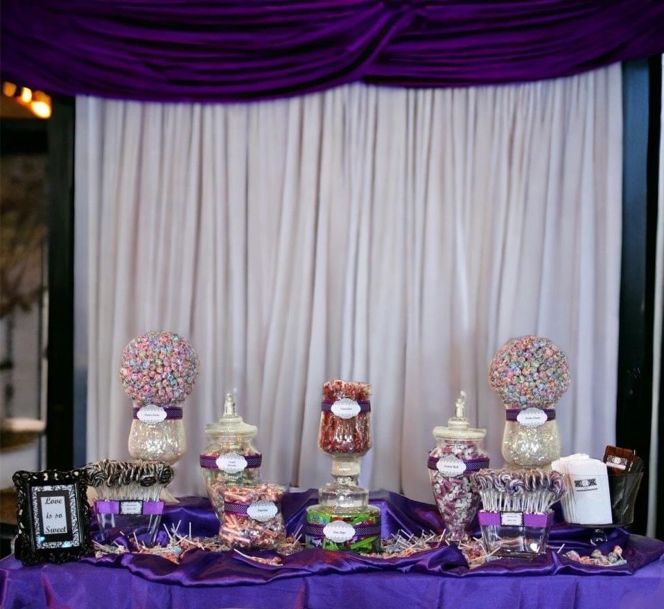 Party Favors: I chose to have a candy buffet, which made it fun for the guests since they could pick what they wanted. I enjoyed adding personalized touches to the table, and it was a big hit at the wedding, especially with the children.